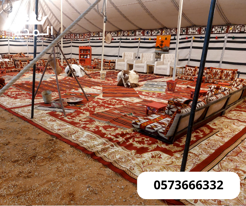 تتوفر خدمات التأجير بمساحات متعددة تناسب عدد الضيوف والموقع، مع إمكانية تجهيز الخيام بالكامل من الداخل بالأثاث التراثي، والإضاءة الدافئة، والمكيفات أو الدفايات حسب الموسم. كما يمكن توفير جلسات عربية، وطاولات ضيافة، وسجاد تراثي يضفي لمسة جمالية فريدة.